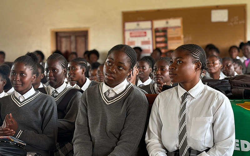 During the visit, Seed Co Zambia Managing Director Mrs Grace Tumeo Bwanali encouraged the girls to prioritise menstrual health and personal hygiene, explaining that access to proper sanitary products is essential for their health, confidence, and academic progress.